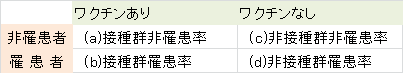 有効率=(1-b:接種群罹患率/d:非接種群罹患率)×100 (単位:%)