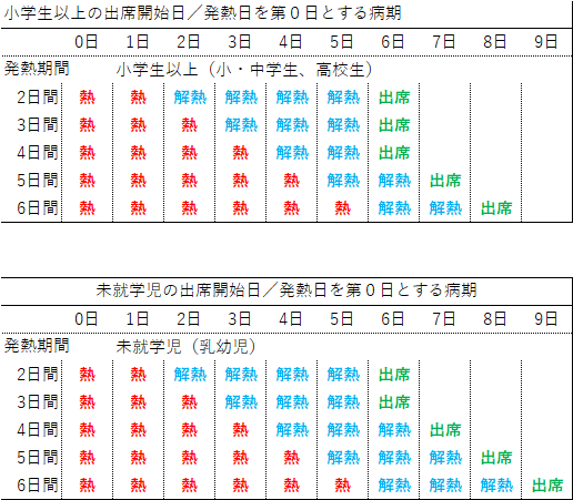 インフルエンザ:乳幼児・児童・生徒の休学期間のめやす